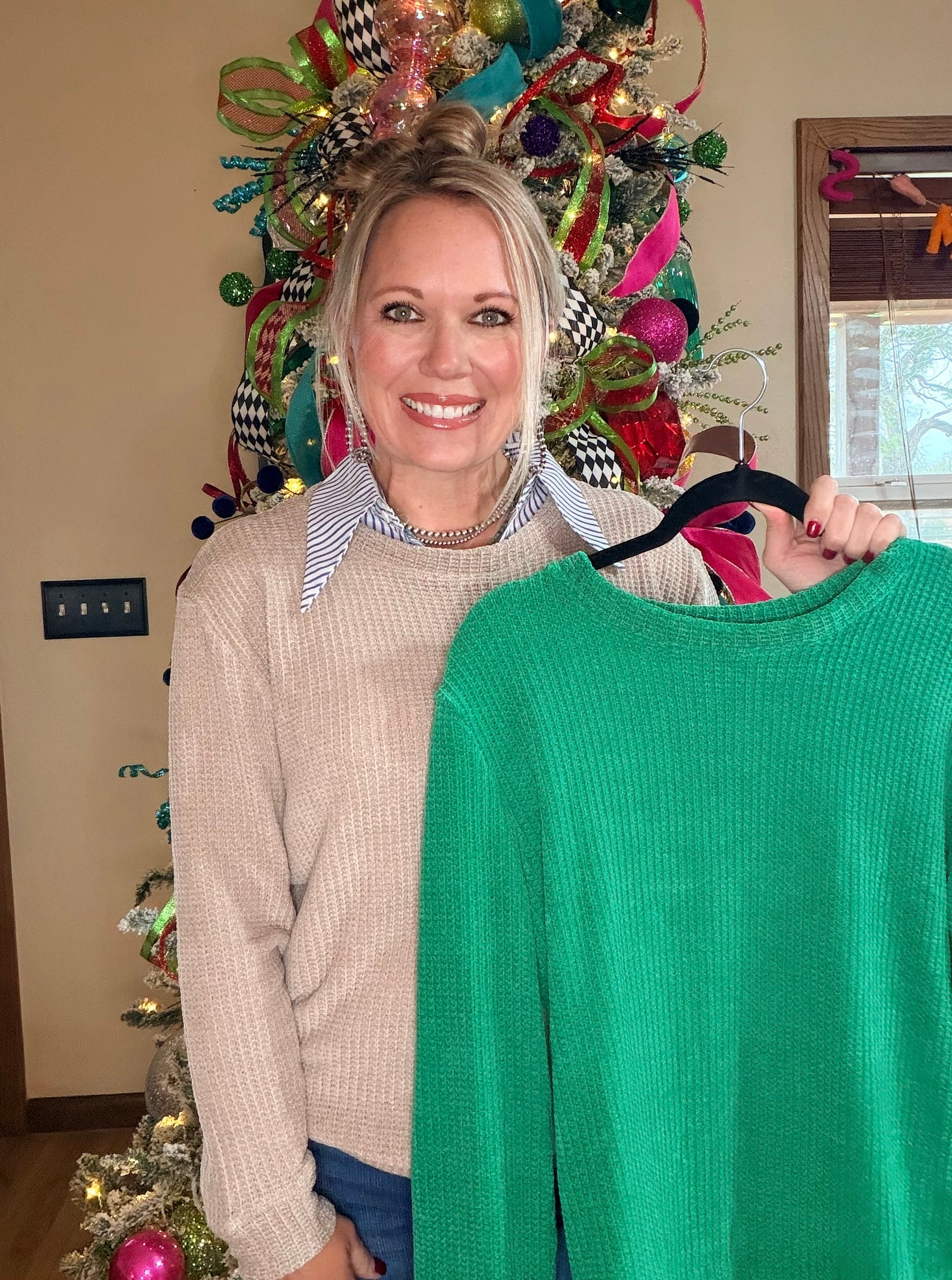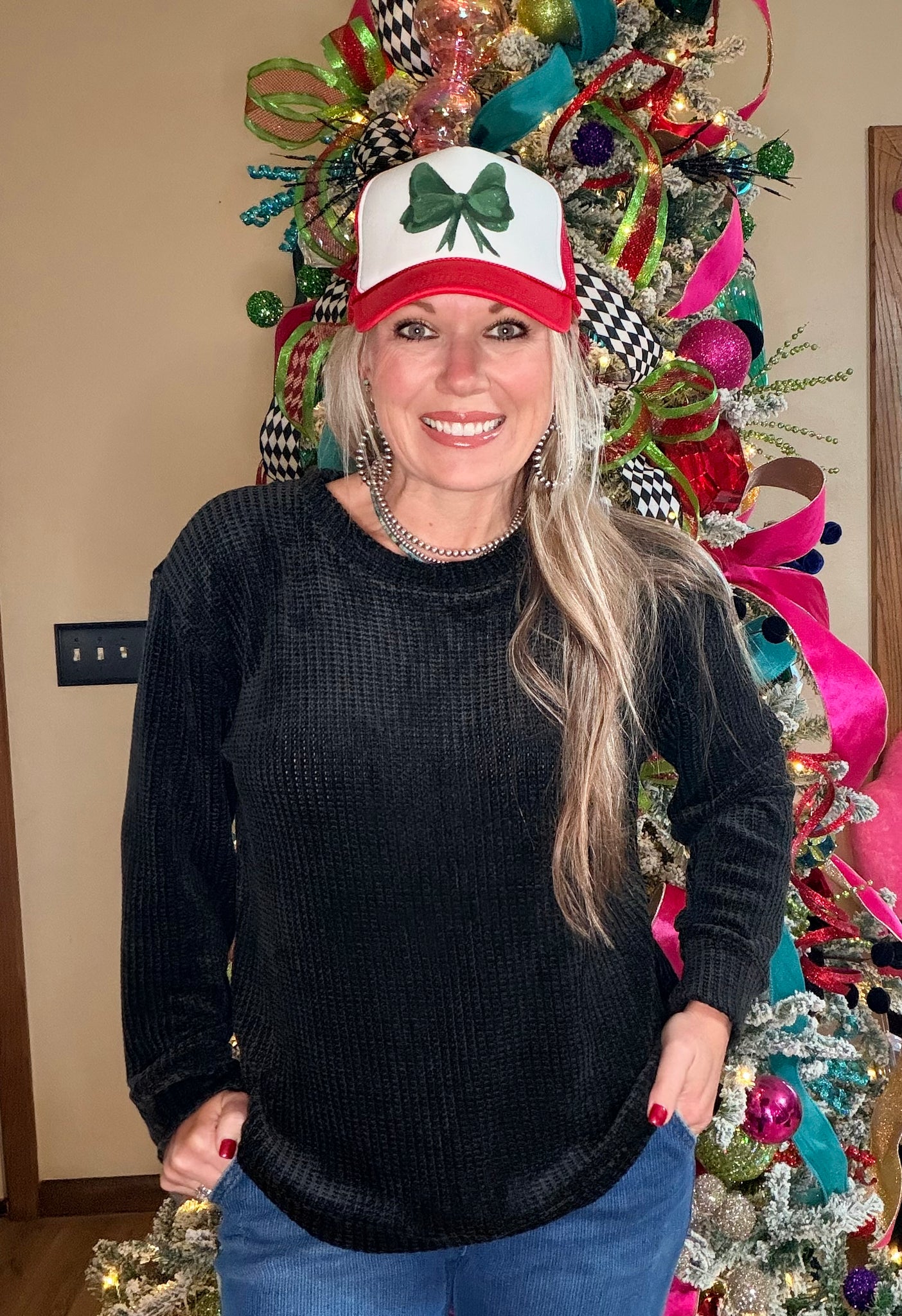 CHENILLE WAFFLE ROUND NECK SWEATER